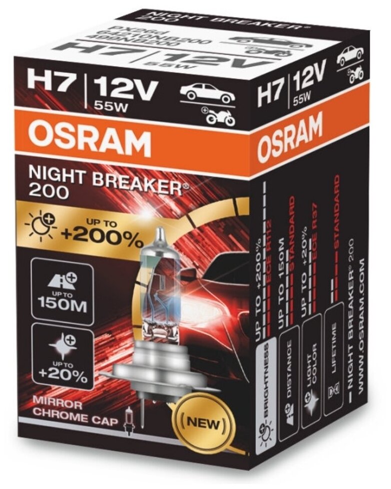 Отзывы на OSRAM 64210NB200 Лампа H7 12V 55W PX26d 3700K NIGHT BREAKER200 +200 1 шт