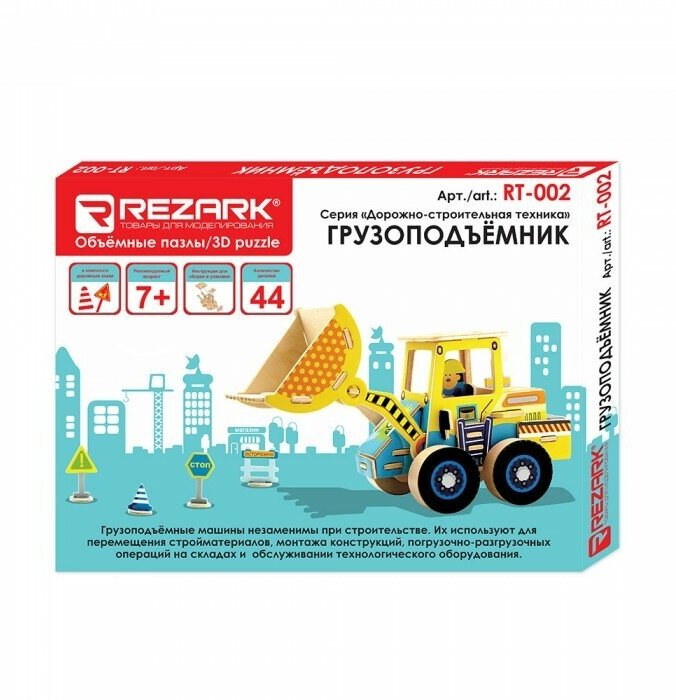 Пазлы 3D 44 деталей. REZARK. Дорожно-строительная техника. Грузоподъемник (дерево, в коробке) RT-002, (High Hope Group Jiangsu Tongtai Co, Ltd.)