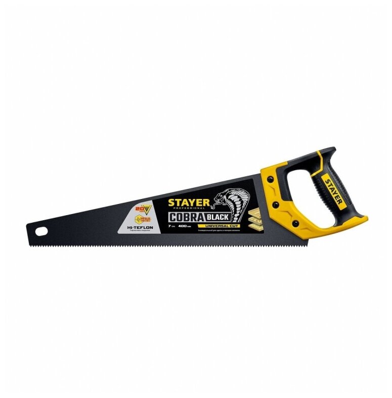 STAYER Ножовка универсальная (пила) "Cobra BLACK" 400 мм, 7TPI, тефлон покрытие, рез вдоль и поперек волокон, для средних заготовок, фанеры, ДСП, МДФ, STAYER ( 2-15081-40_z01 )
