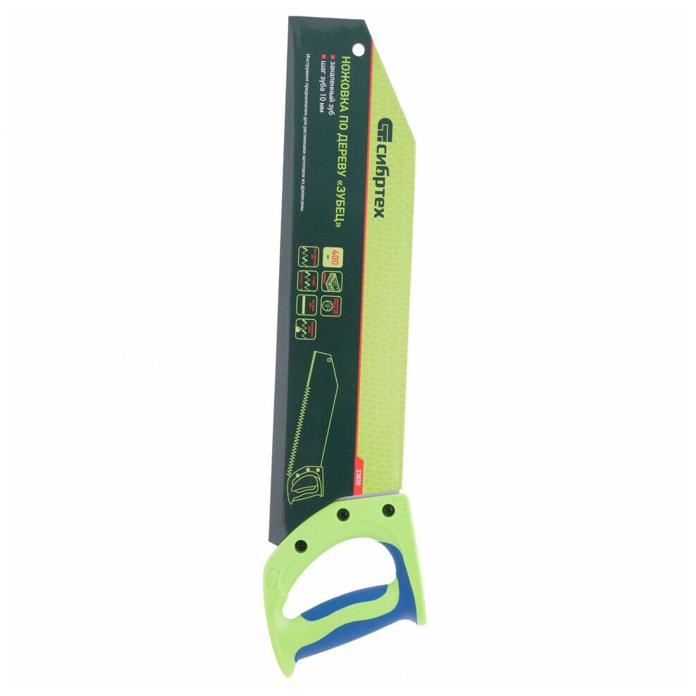 Ножовка по дереву "Зубец", 400 мм, шаг зуба 10 мм, зуб 2D, калёный зуб, 2-х комп. рукоятка, СИБРТЕХ 23820