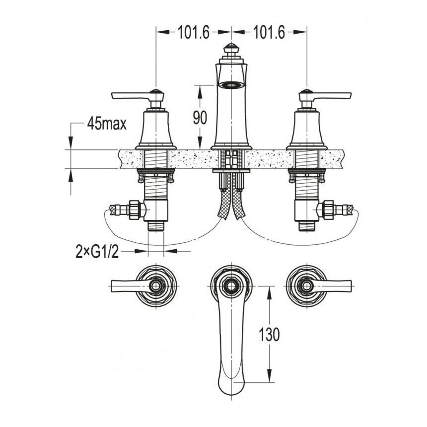 Смеситель для раковины (умывальника) CEZARES Liberty BLS-01-W0 двухрычажный встраиваемый