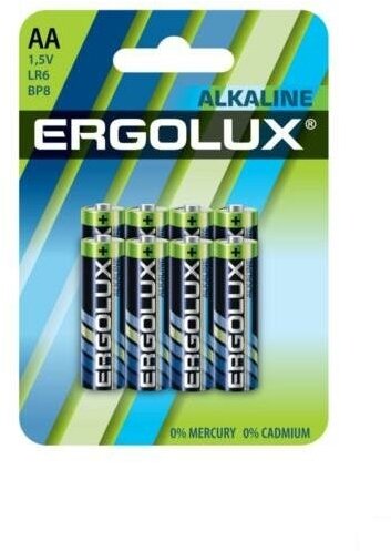 10 цен на Ergolux Alkaline BL8 LR6 (LR6 BP8, батарейка,1.5В)