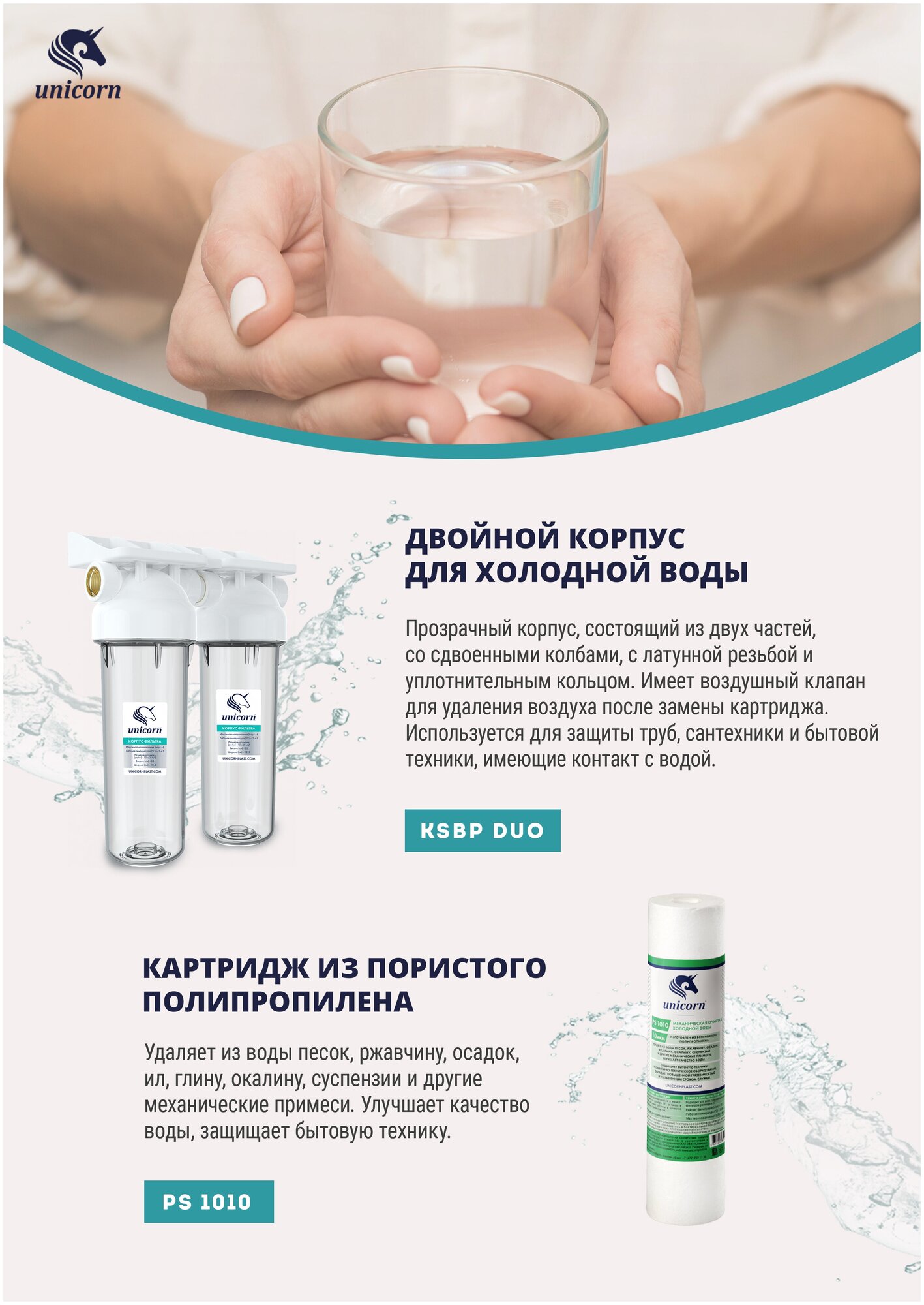 Отзывы на Unicorn Фильтр магистральный 3/4'' KSBP DUO двойной для хол. воды прозр. 10" KSBP 3/4 DUO новинка 548621