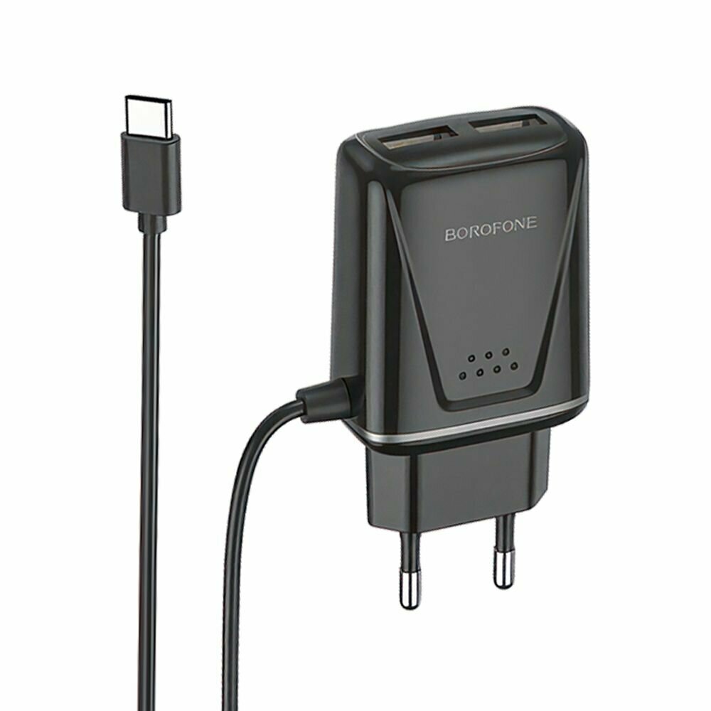 Сетевое зарядное устройство (СЗУ) Borofone BA50A (2 USB) + кабель Type-C, 2.1 А, черный