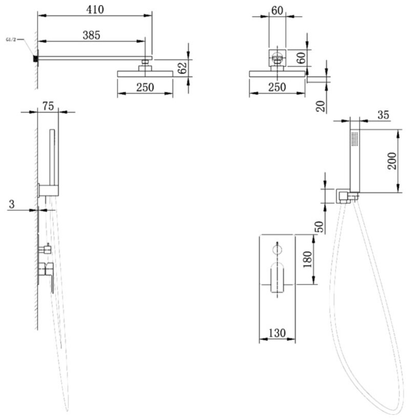 Душевой комплект 250 мм Abber Weiss Insel AF8018W
