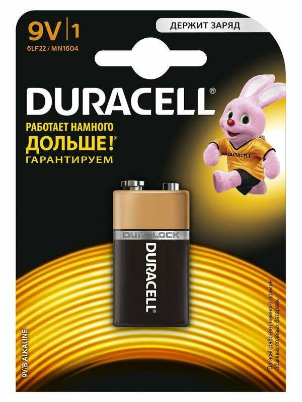 Батарейкa щелочная (алкалиновая) тип крона 9V-6LR61, Duracell Basic (1шт в блистере)