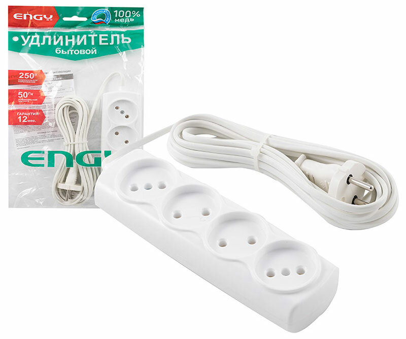 10 цен на Удлинитель Engy Эконом 5м/4роз. (ШВВП 2х0,75)