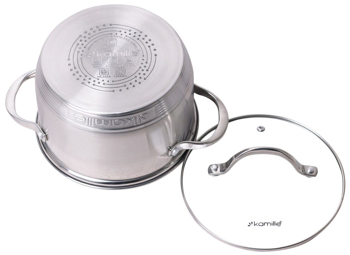 10 цен на Кастрюля 4,7 л. из нержавеющей стали с крышкой Kamille KM-4722S (d22х13.5 см) с 7-слойным дном
