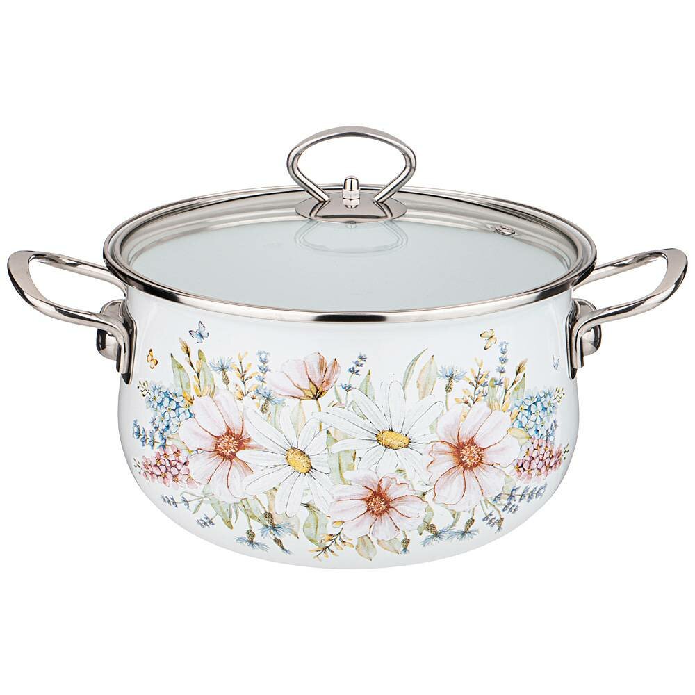 10 цен на Кастрюля эмалированная со стеклянной крышкой серия дворцовый парк 3.6 л, Agness (160176)