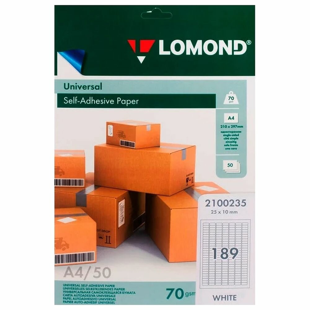 Самоклеящаяся бумага Lomond A4, белая, 189 делений (25.4 x 10 мм), 70 г/м2, для этикеток, 50 листов (2100235)