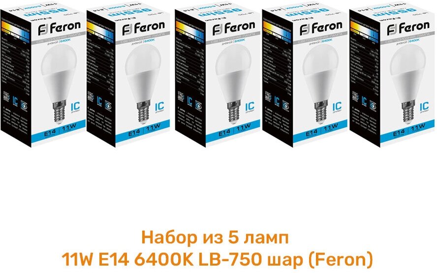 Feron шар G45 E14 11W(955lm) 6400K 6K матовая 92x45, LB-750 25948 (арт. 694368)