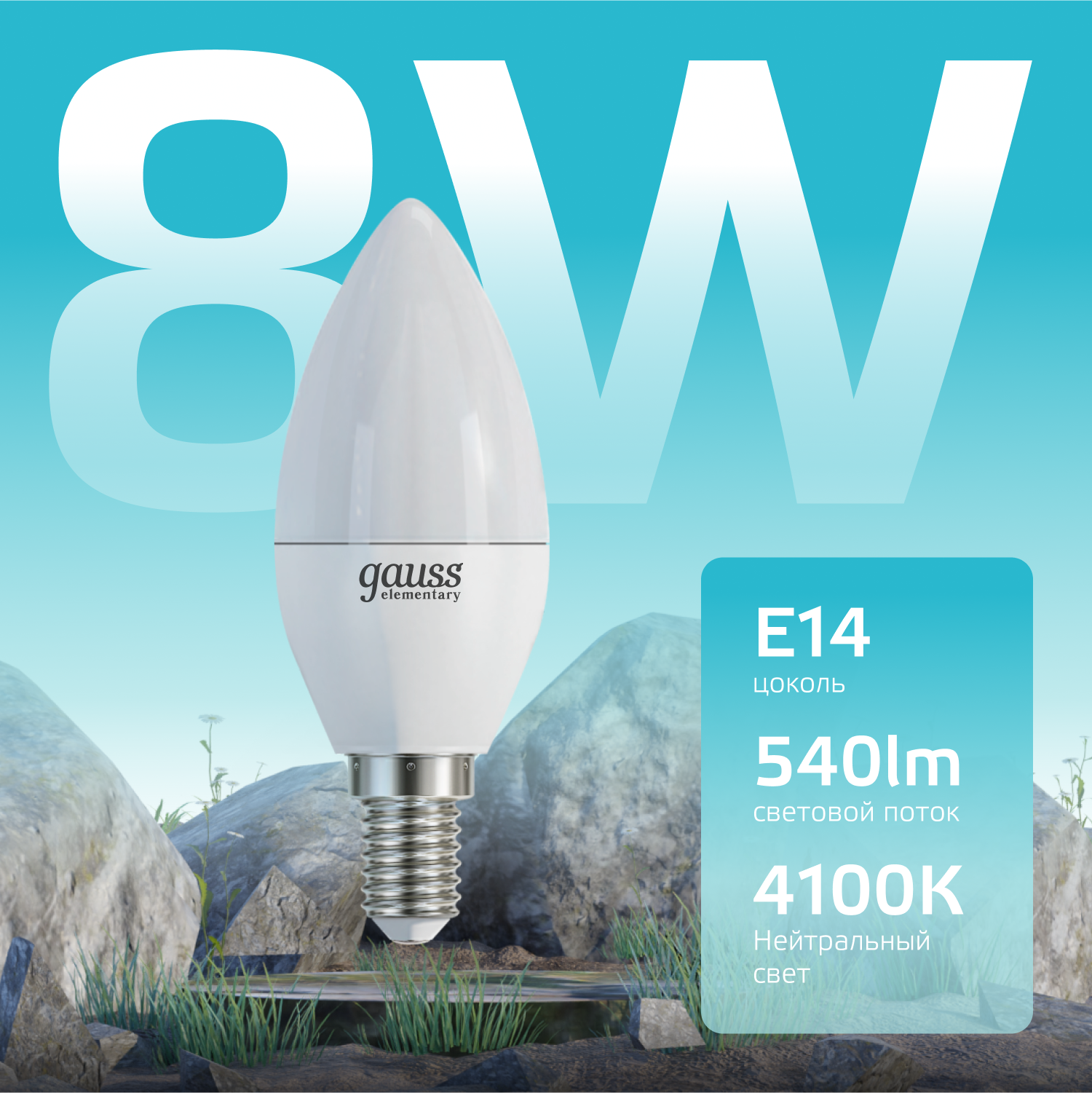 Отзывы на Лампа светодиодная Gauss Elementary 8Вт цок.:E14 свеча 220B 4100K св.свеч.бел.нейт. С35 (упак.:10шт) (33128)