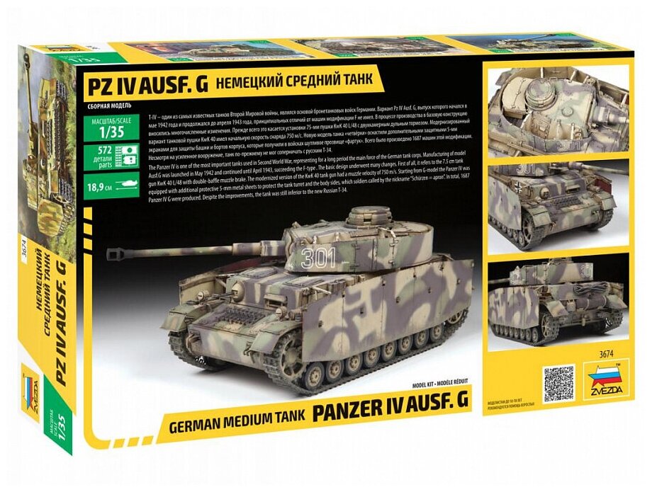 Звезда 3674 Немецкий средний танк Pz IV Ausf. G. Сборная модель в масштабе 1/35.