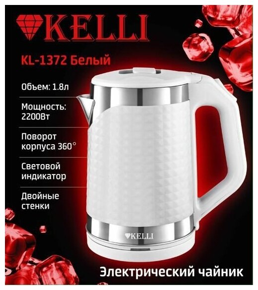 Чайник электрический KELLI KL-1372W 1,8 л, белый информация: