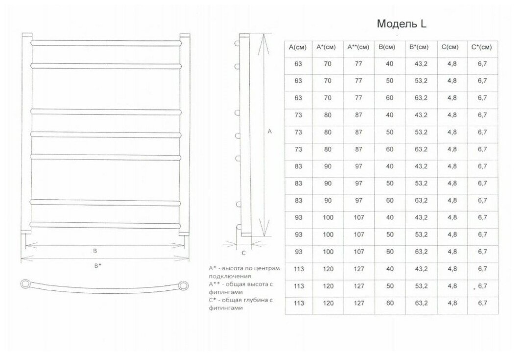 Полотенцесушитель водяной Тругор Блиц ПМ50 60x40
