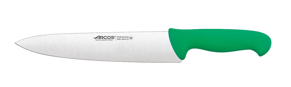 Отзывы на Нож кухонный поварской-шеф 25 см, зеленая рукоять нержавеющая сталь Nitrum, серия 2900, Arcos, 292221