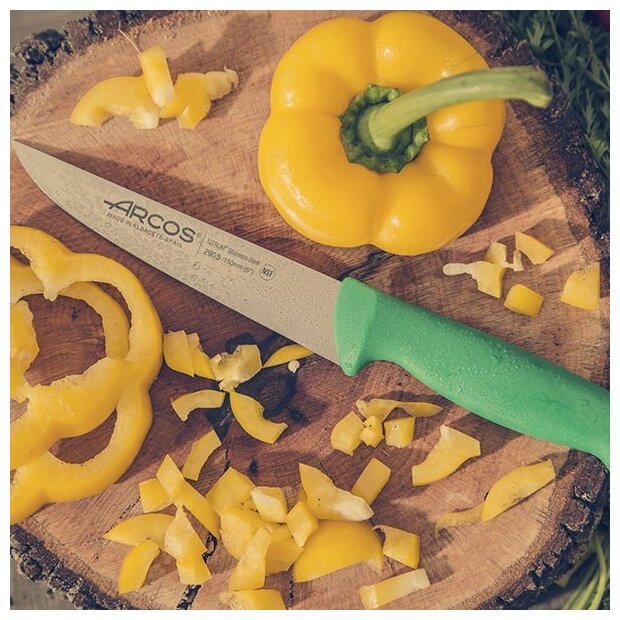 10 цен на Нож кухонный поварской-шеф 25 см, зеленая рукоять нержавеющая сталь Nitrum, серия 2900, Arcos, 292221