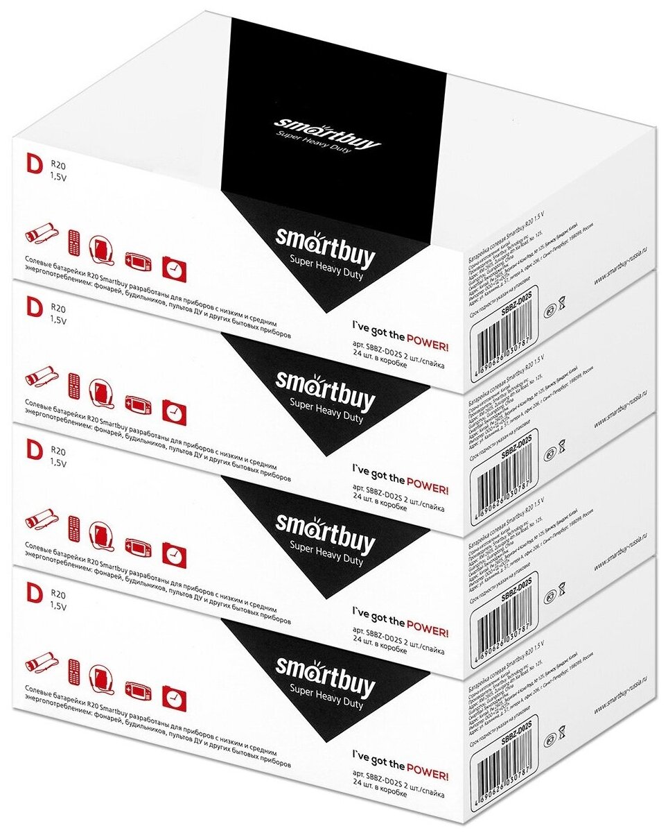 Батарейка SmartBuy Super Heavy Duty D R20, 4 уп., в упаковке: 24 шт. информация:
