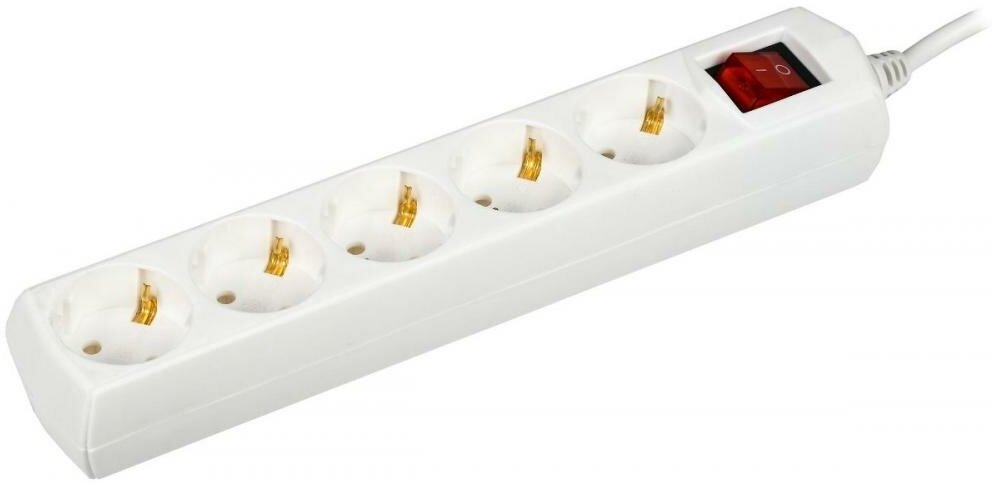Удлинитель с выключателем Generica У05В, ПВС 3 x 1 мм², с заземлением, 5 розеток, 5 м, белый