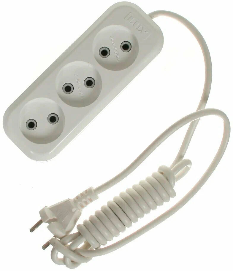 Удлинитель LUX У3-О, 3 розетки, б/з, 10А / 2200 Вт белый 5 м 0.75 м² 3