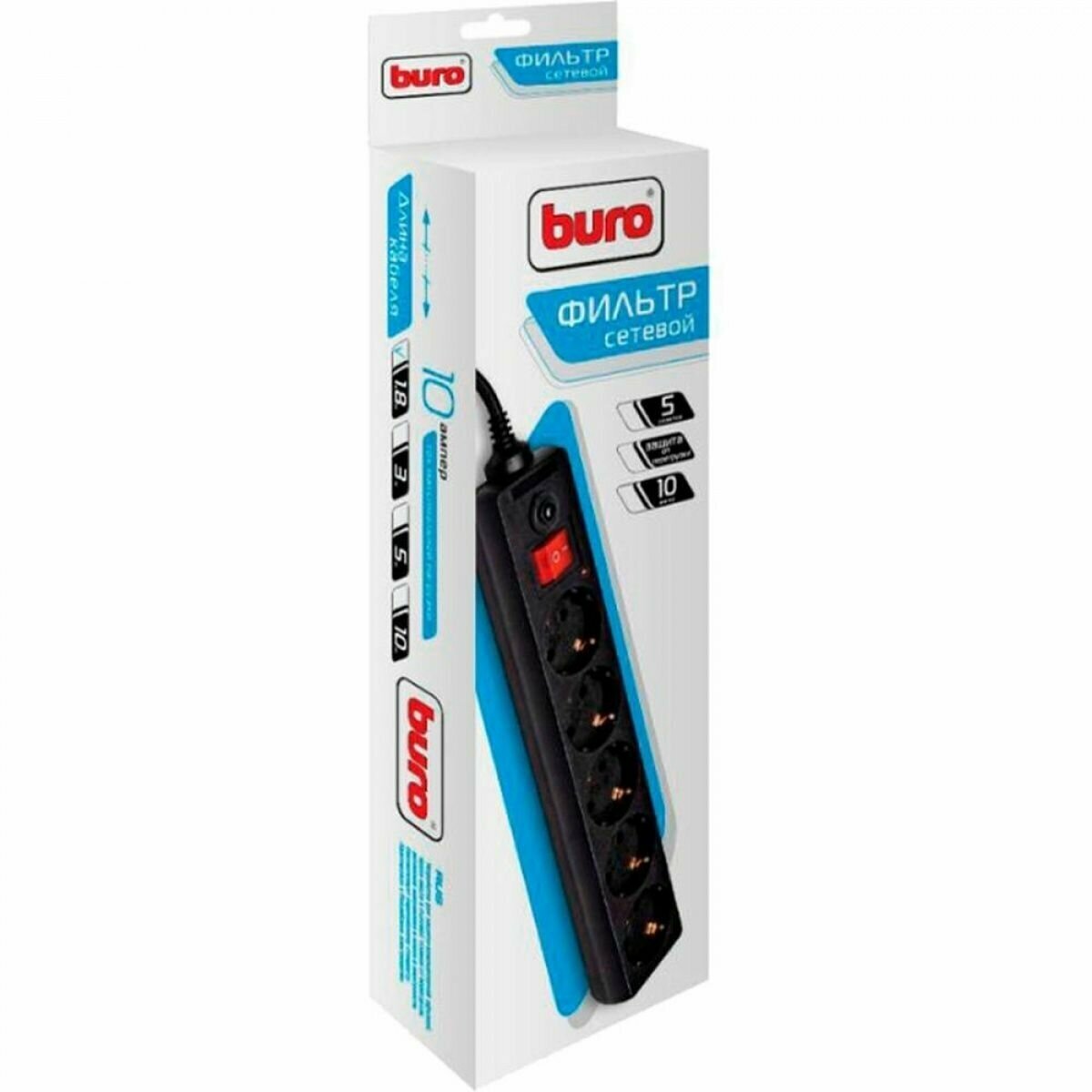Сетевой фильтр Buro 600SH-5-B, 6 розеток, 5 м, с/з, 10А / 2200 Вт