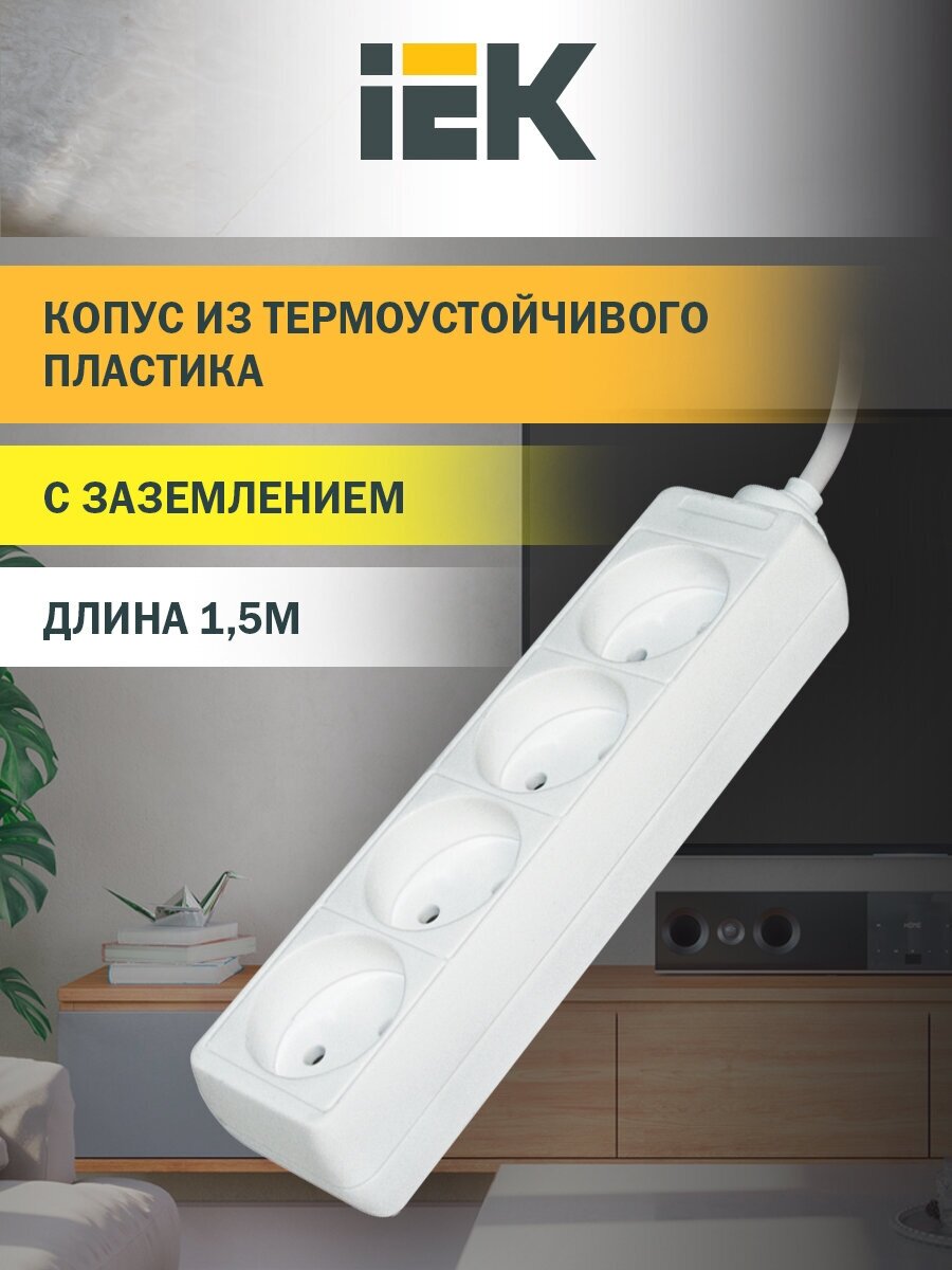 Удлинитель IEK У4 4 места 2P/1,5 метра 2х0.75мм2 10А/250В информация: