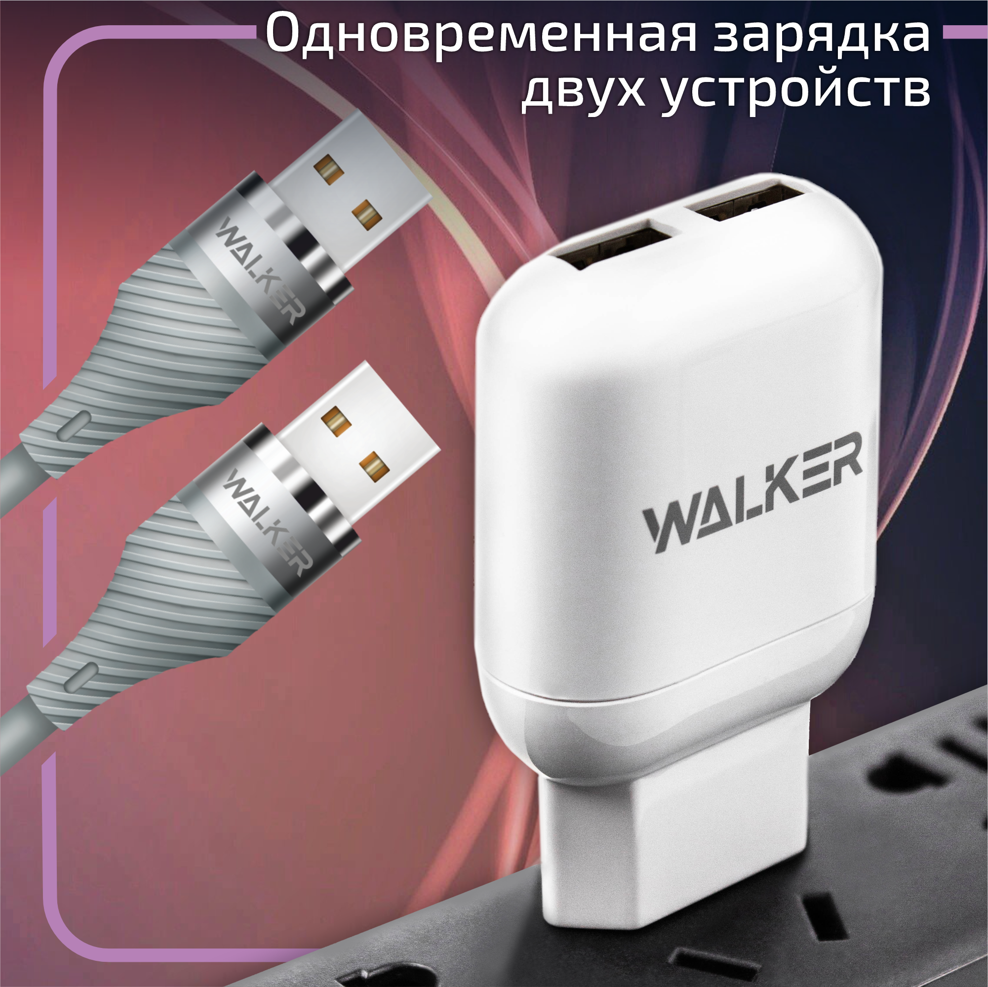 10 цен на Зарядное устройство для телефона, 2 USB разъема по 2.4 A, мощность 12W, WALKER, WH-33, зарядка для iphone, блок питания на андроид, белый