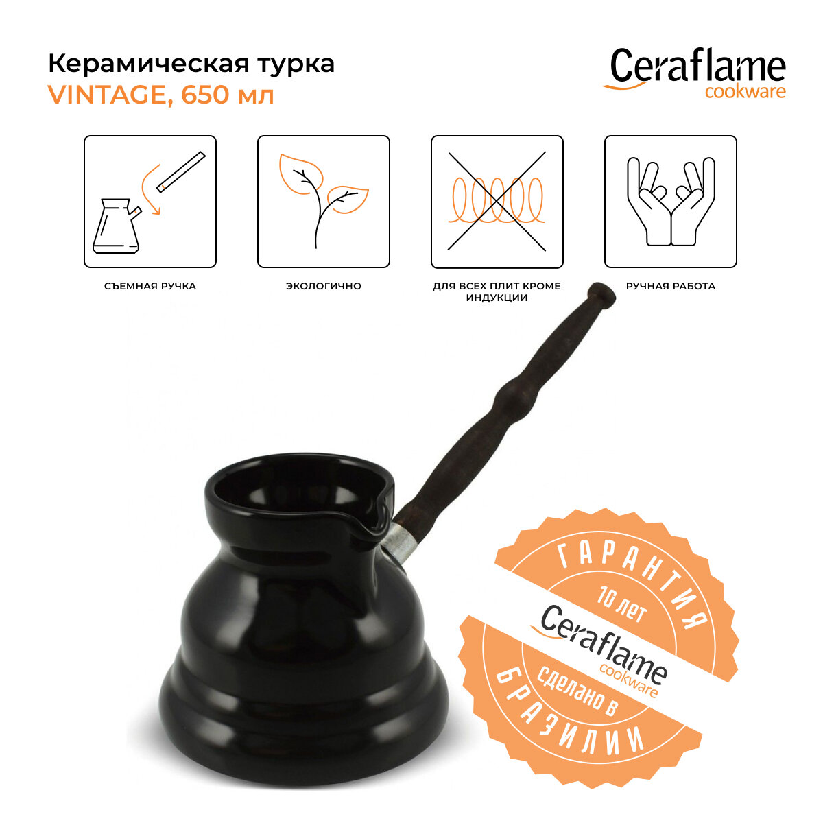 Турка керамическая для кофе Ceraflame Vintage, 650 мл, цвет черный информация: