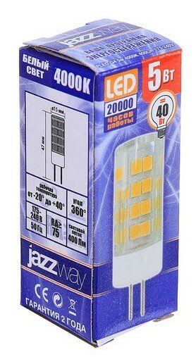 Jazzway G4 220V 5W 4000K 4K 47x15 PLED .5000971 (арт. 562691)