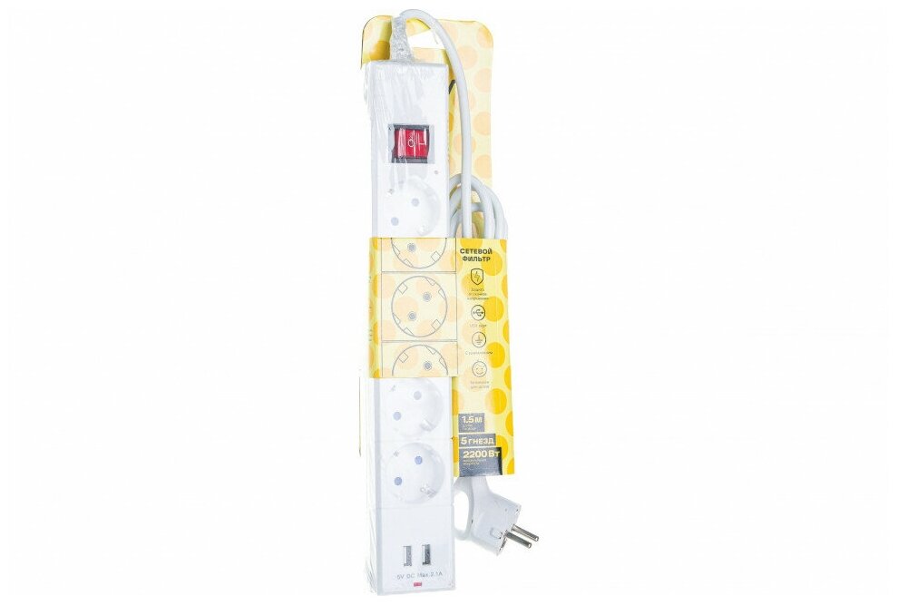 Отзывы на Сетевой фильтр Duwi 5 гнезд с/з шторки ПВС 3*075 2USB 1,5м белый 2200Вт 10А 32590 1