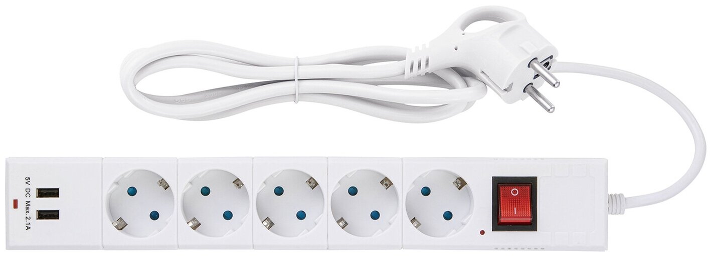 Сетевой фильтр DUWI 32590 1 С/Ф 5 розеток, 1,5 м, 2USB, белый