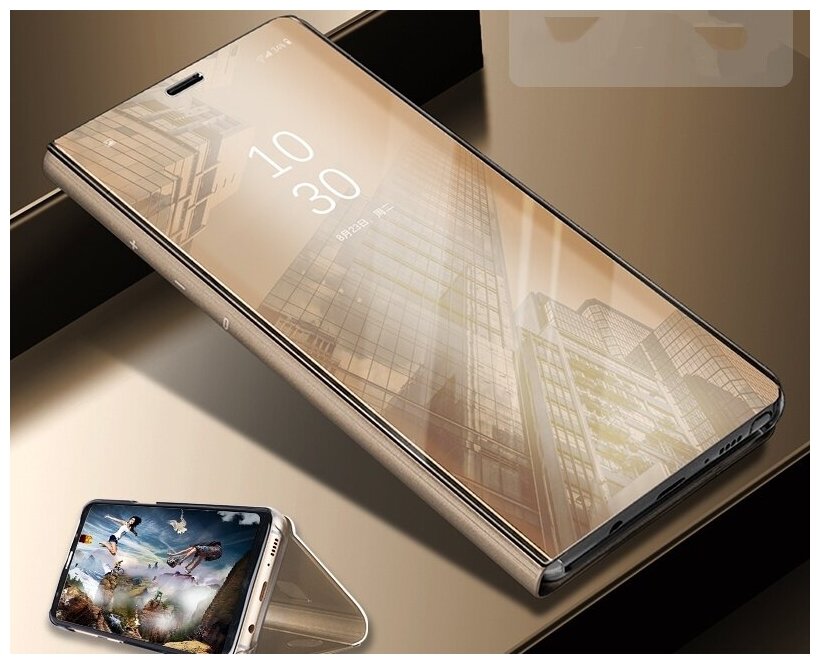 Отзывы на Чехол-книжка MyPads для Samsung Galaxy J6 (2018) с дизайном Clear View Cover с полупрозрачной пластиковой крышкой с зеркальной поверхностью золотой