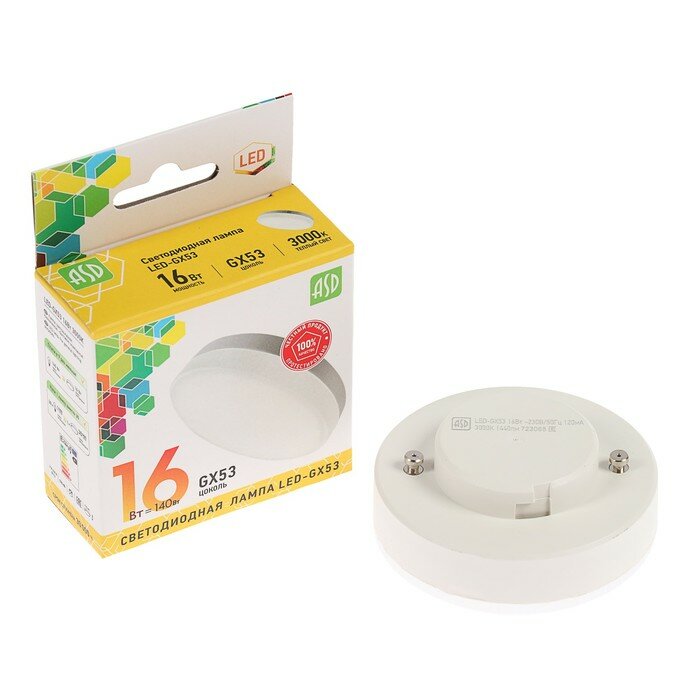 Лампа ASD сд LED-GX53-std 16Вт 230В 3000К 1440Лм 4690612018720 информация:
