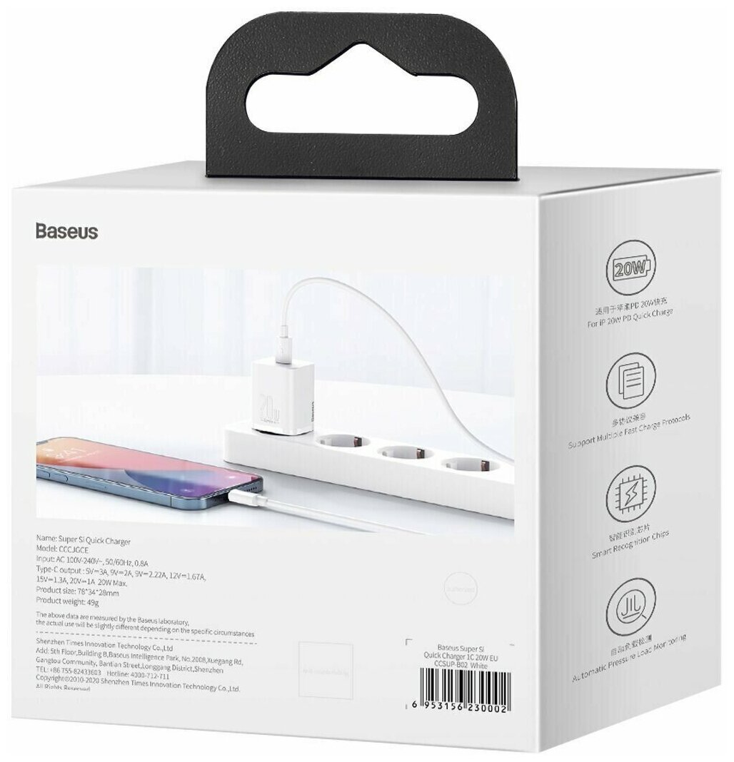 Сетевая зарядка Baseus Super Si 1C fast wall charger USB Type C 20W Power (CCSUP-B02), Белый информация: