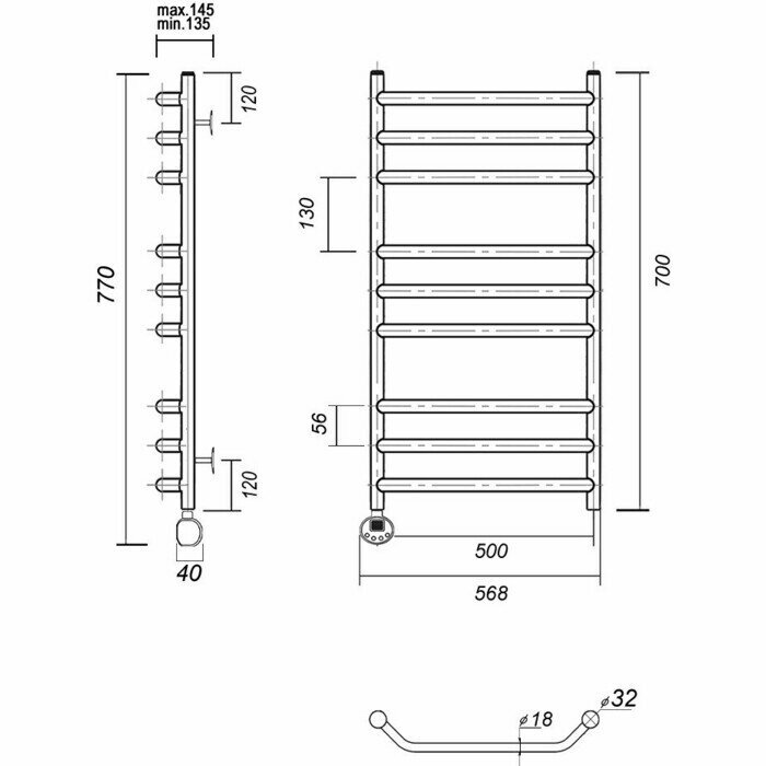 Полотенцесушитель электрический Domoterm Лаура П9 500х700 EL слева информация: