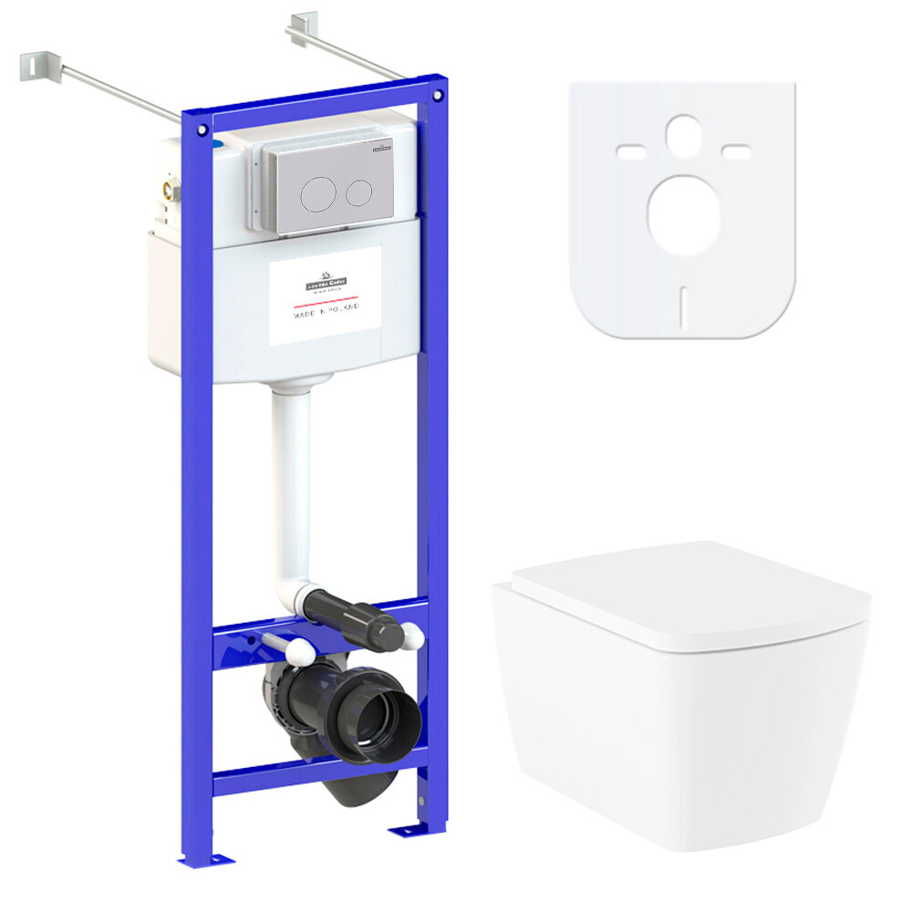 Комплект 7 в 1 Lavinia Boho Aveo Rimless 75110271, безободковый унитаз, сиденье микролифт, инсталляция, крепление, клавиша смыва, шумоизоляция, диспенсер
