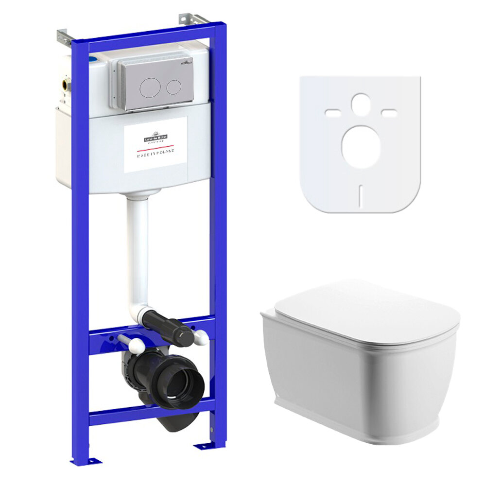Комплект 7 в 1 Lavinia Boho Aveo Rimless 75110271, безободковый унитаз, сиденье микролифт, инсталляция, крепление, клавиша смыва, шумоизоляция, диспенсер