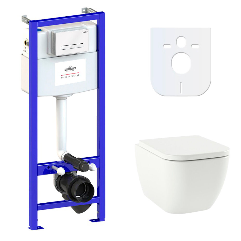 Комплект 7 в 1 Lavinia Boho Aveo Rimless 75110271, безободковый унитаз, сиденье микролифт, инсталляция, крепление, клавиша смыва, шумоизоляция, диспенсер