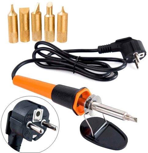 Набор для выжигания, 7 предметов: паяльник 30 Вт, подставка, жала сменные Sparta [913112]