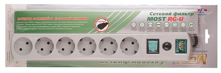 Сетевой фильтр MOST Real RG-U 6 розеток 1.5 м белый информация: