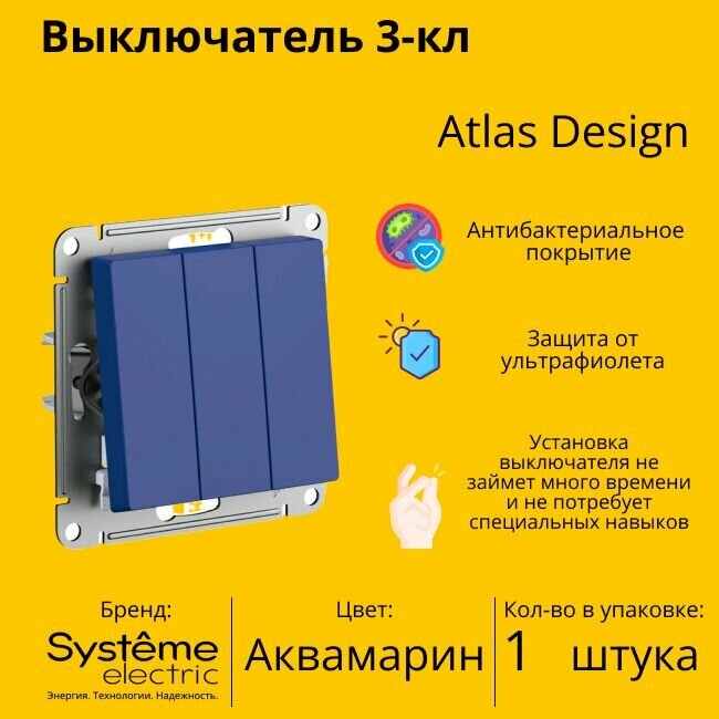 Systeme Electric AtlasDesign Аквамарин Выключатель 3-клавишный, сх.1+1+1, 10АХ, механизм