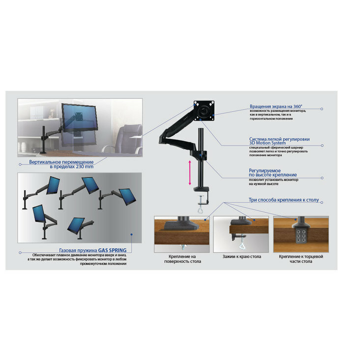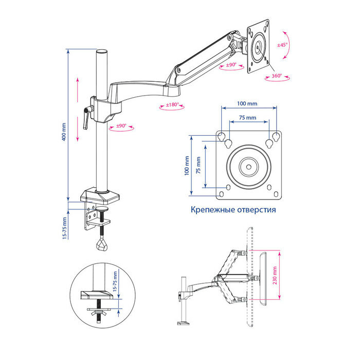 | Способ регулировки | наклон / по высоте / поворот / фиксированный |