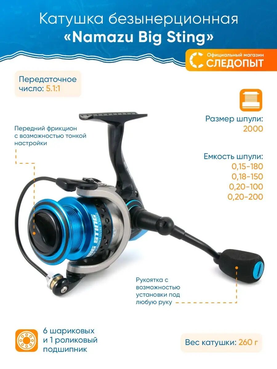 Отзывы на Катушка безынерционная Namazu Big Sting BS2000, 6+1 подш., металлическая шпуля + запасная графитовая шпуля