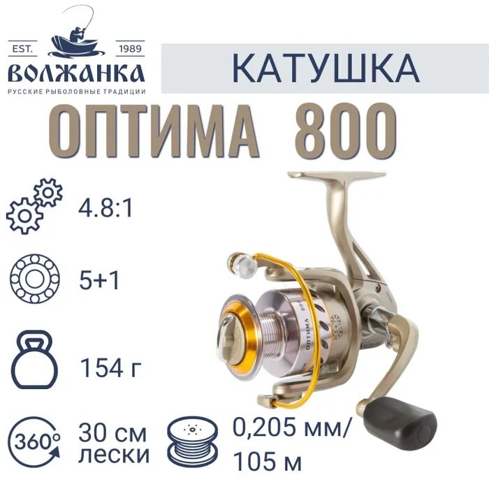 Катушка рыболовная для спиннинга волжанка Оптима 800/Катушка для рыбалки информация: