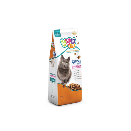 10 цен на HOP LIFE Sterilised сухой корм для взрослых стерилизованных кошек с рыбой - 15 кг