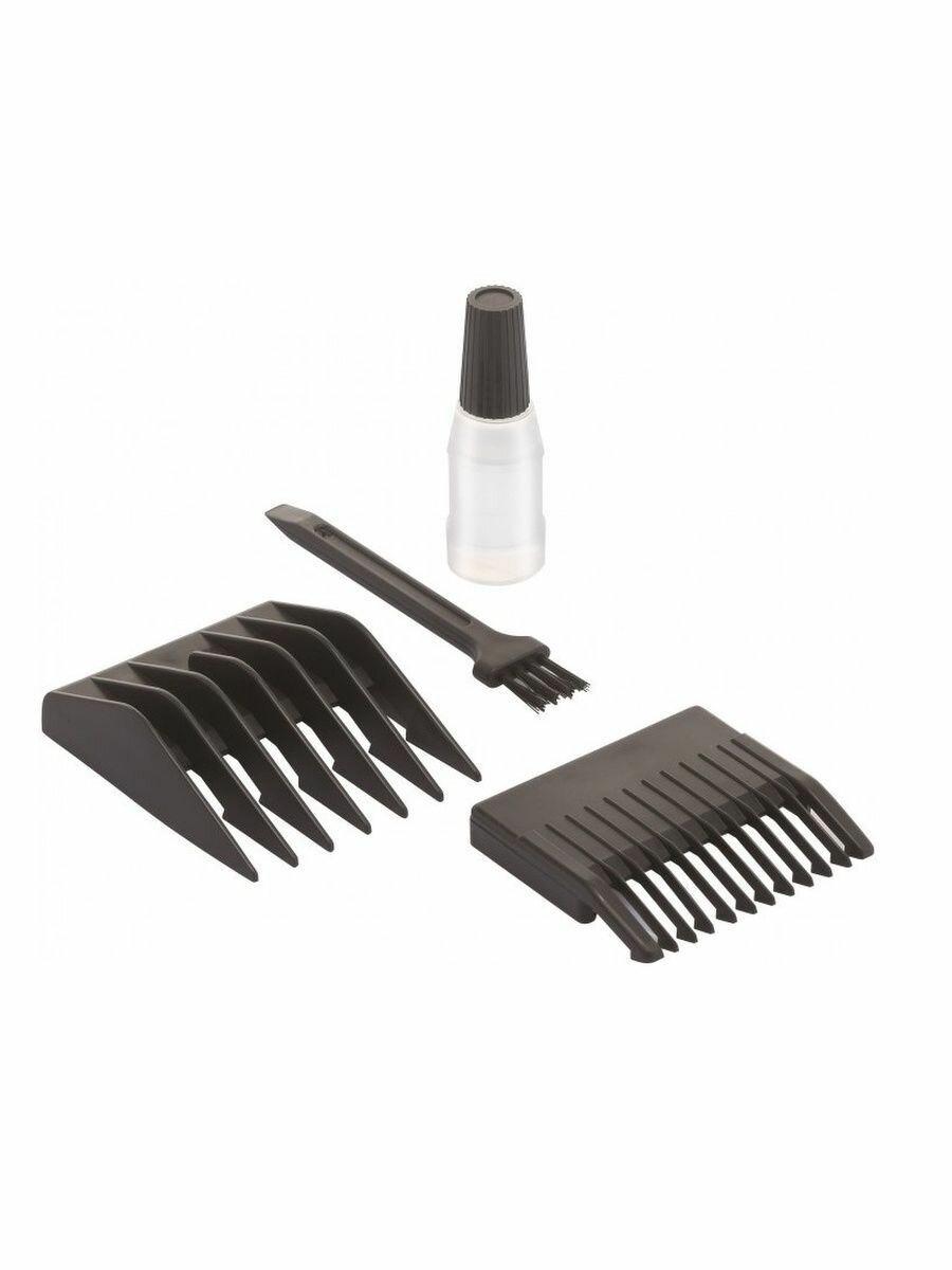| Дополнительная информация | комплектация: машинка, 2 насадки 4,5 и 9 мм, щетка для чистки, масло; мощность 15 Вт |