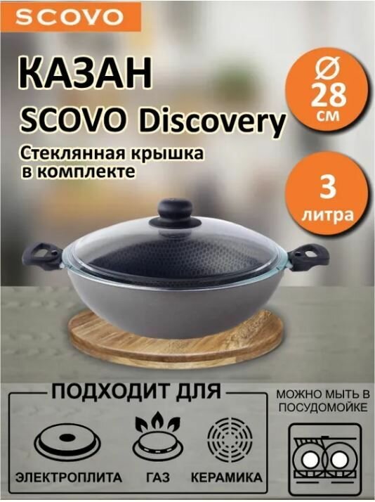 Казан Scovo Discovery СД-046, с антипригарным покрытием, с крышкой, 28 см информация: