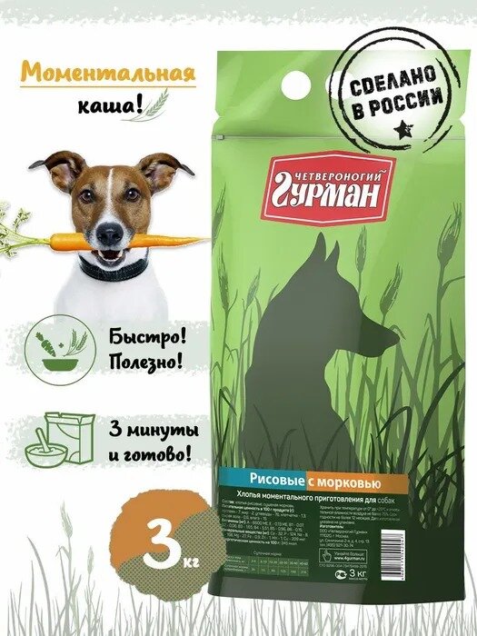 Каша для собак Четвероногий Гурман, рисовые хлопья моментального приготовления с морковью,3 кг