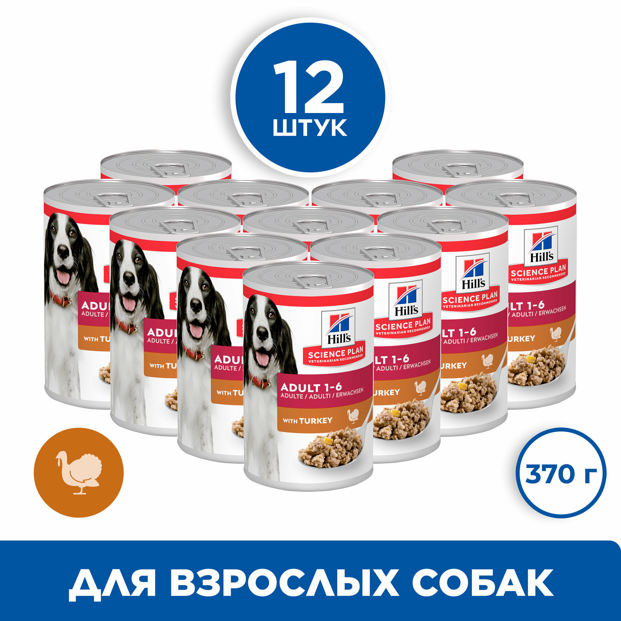 Консервы Хиллс для взрослых собак Индейка (цена за упаковку) 370г x 12шт 6 210 ₽