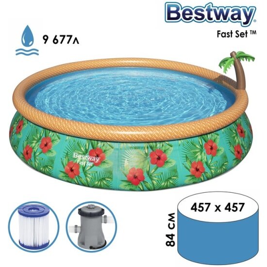 Круглый бассейн Fast Set Пальма 457х84 cм, 9677л, фильтр-насос 2006л/ч, Bestway, артикул 57416